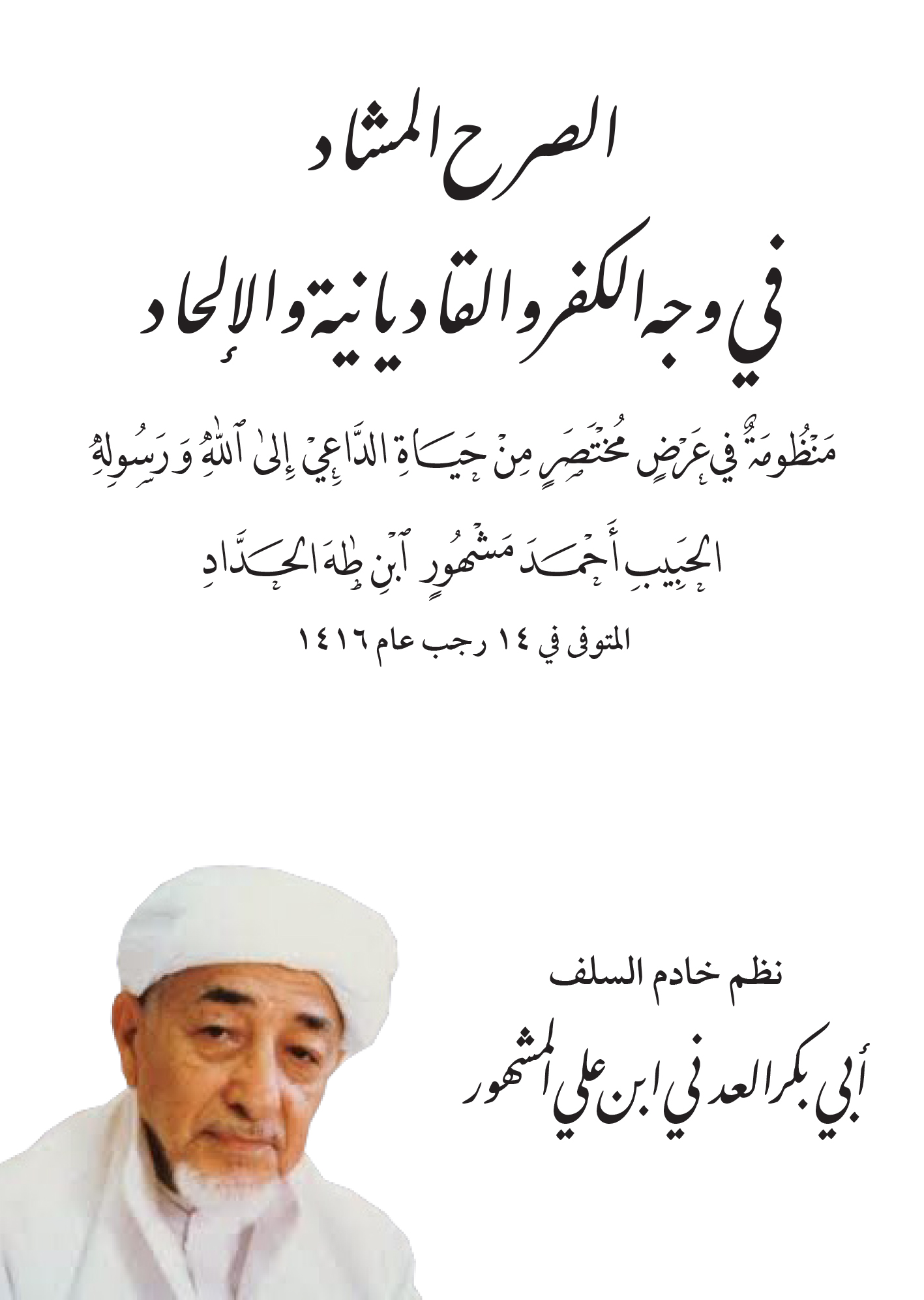 الصرح المشاد في وجه الكفر والقاديانية والإلحاد منظومة في عرض مختصر من حياة الداعي إلى الله ورسوله الحبيب أحمد مشهور ابن طه الحداد