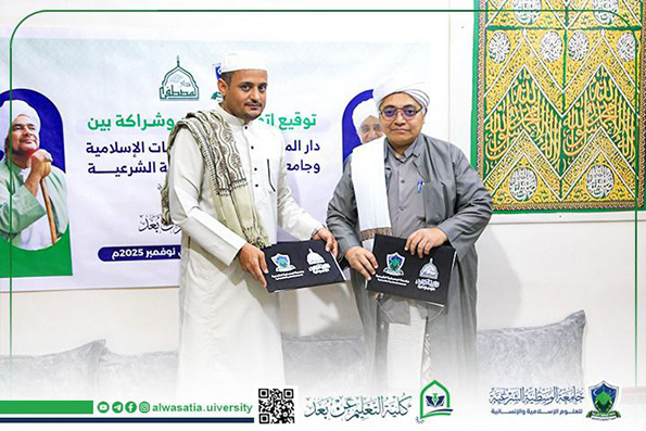 وقّعت كلية التعليم عن بُعد بجامعة الوسطية الشرعية للعلوم الإسلامية والإنسانية ودار المصطفى للدراسات الإسلامية بتريم، مساء الإثنين 26 جماد الآخر 1447هـ، اتفاقية تعاون أكاديمي تعليمي تهدف إلى تعزيز الشراكة التعليمية وبناء جسور التواصل الأكاديمي في مجالات العلوم الشرعية والإنسانية، وتحقيق التكامل بين التعليم الشرعي الأبوي المسند والتعليم الأكاديمي وفق نظام التعليم عن بُعد.